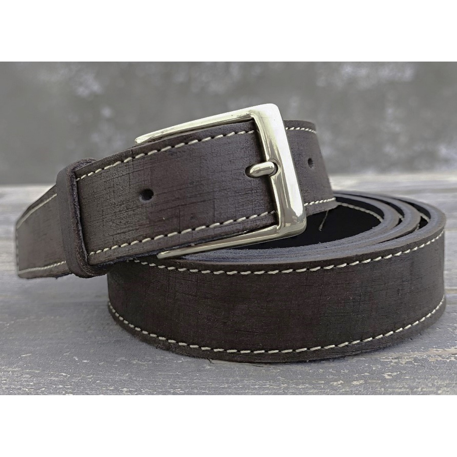 Notre ceinture cuir largeur 30 mm, est certainement notre modèle le plus apprécie. Mixte, elle est la ceinture qui va avec toutes les tenues. Cette largeur de ceinture est confortable et se glisse dans les passants de la plupart des pantalons, que ce soit des jeans, des chinos ou des pantalons plus habillés. Cette ceinture est fabriquée en cuir de vachette pleine fleur BRUN, ce cuir doux laisse apparaître un grain léger, naturel et authentique, son coloris foncé est très intense.